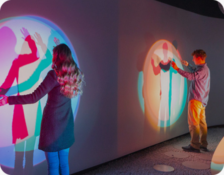 數(shù)字技術(shù): 感應(yīng)觸點(diǎn)裝置 、 弧幕影院 、 互動裝置等